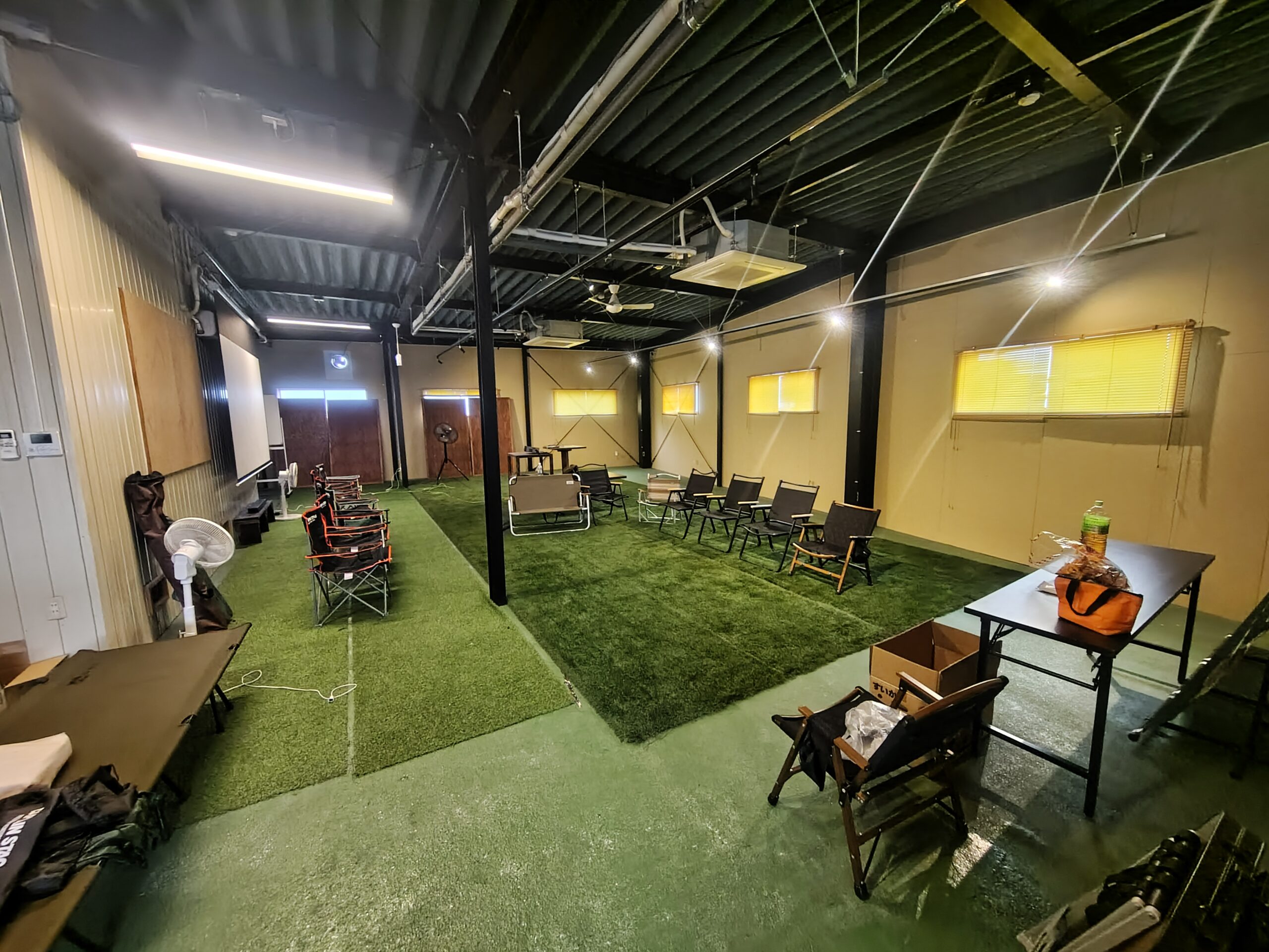 Kasahara Laboには、テントやコンロなどの室内キャンプ設備があり、室内でアウトドア気分を楽しめます。天候に左右されず、お子さんがいても安心して使えるのが嬉しいポイント。打ち上げでこの設備を活用した方からは「居酒屋では味わえないワクワク感があった」と好評です。人工芝の上で寝転びながら、思い思いの非日常を楽しんでみてください。